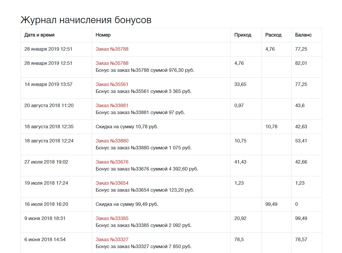 Мой счетВ разделе “Мой Счет" вы можете отслеживать состояние вашего счета.В нашем магазине действует дисконтная (накопительная) программа. За каждый заказ, который вы оформляете в нашем магазине, вам начисляется бонус на ваш личный счет. Бонус зависит от типа товара, который вы приобретаете, и может варьироваться от 1% до 3%. Накопленные средства вы можете использовать при оплате следующего заказа. Также, на Ваш счет зачисляются средства от вашего участия в нашей реферальной программе. Приглашение принять участие в реферальной программе Вы получаете автоматически, сразу после регистрации и первого посещения личного кабинета. С условиями участия в программе Вы можете ознакомиться по соответствующей ссылке. После приема приглашения к участию в программе, тут же Вы будете видеть отчет по Вашим рефералам. Ниже вы можете видеть подробную историю всех транзакций, которые проходили по вашему счету. К меню |